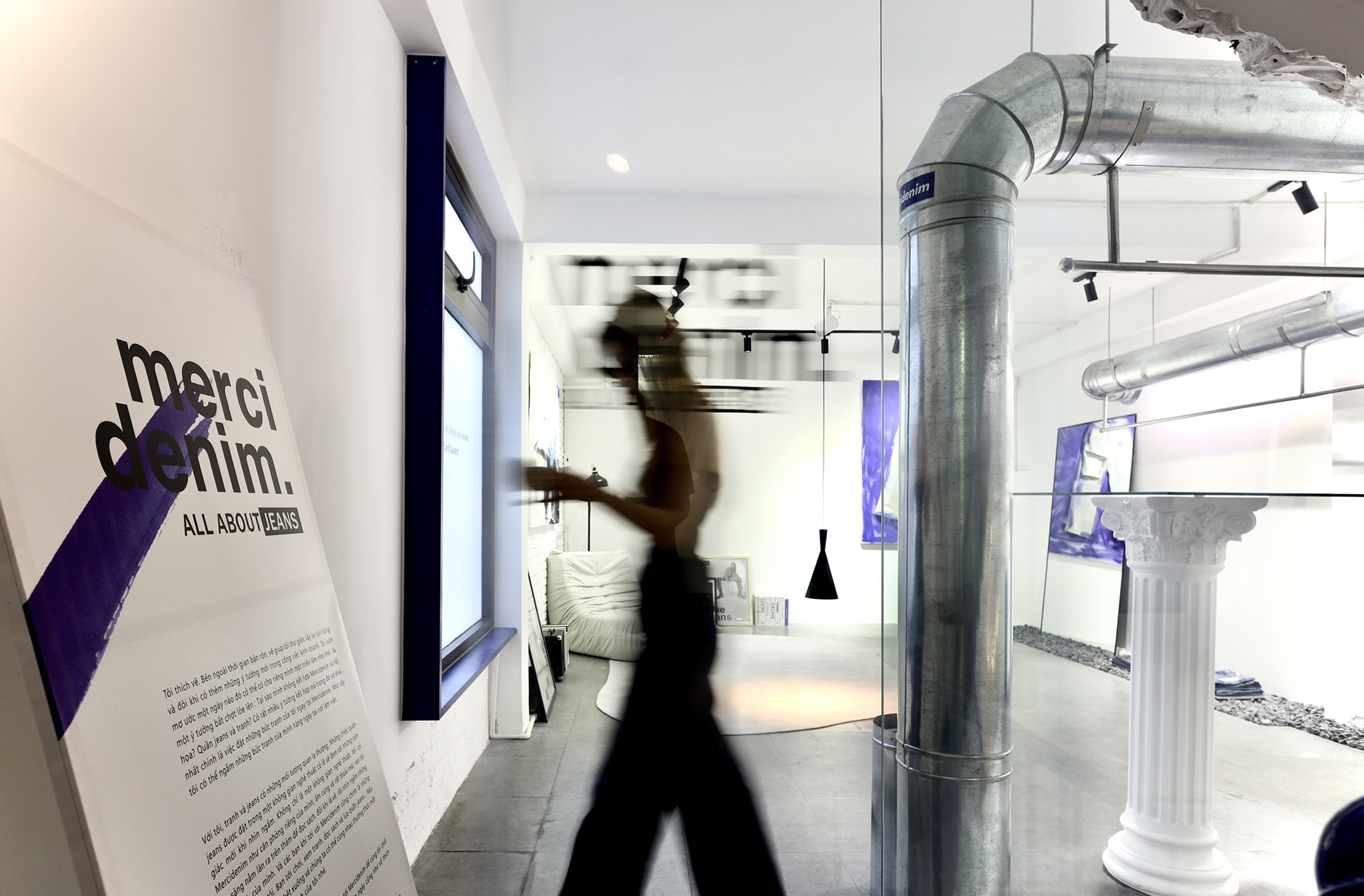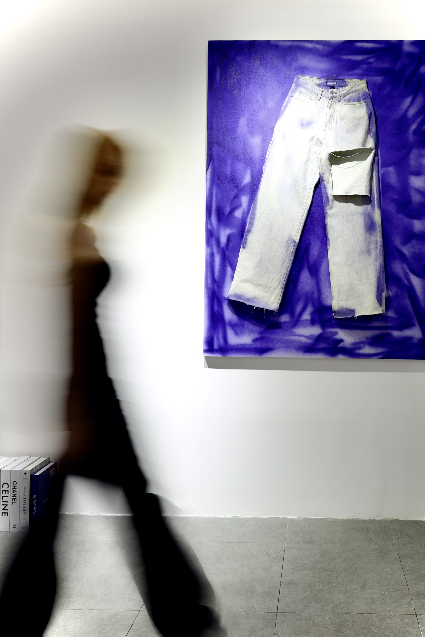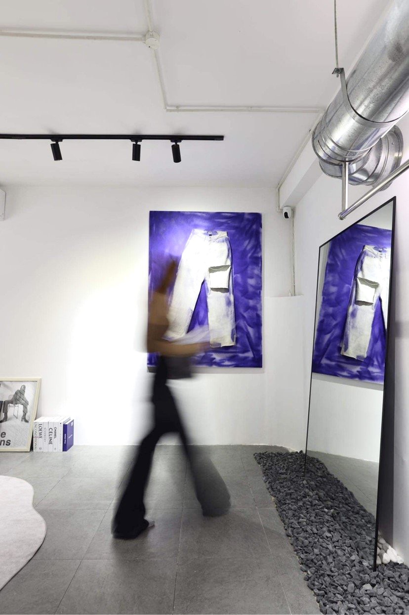 MERCI DENIM is a local brand specializing in women’s jeans in Saigon. The shop owner is a girl who is passionate about painting. Outside of her busy time, paintings help her relax, find balance, and sometimes come up with new business ideas. Her dream is to one day have her small exhibition. These facts have led me to the idea of a combination between Mercidenim and art, between jeans and paintings. Mercidenim becomes now an art gallery. The relationship between paintings and jeans is unusual. Jeans placed next to abstract, artistic paintings bring about a unique feeling when viewed together.