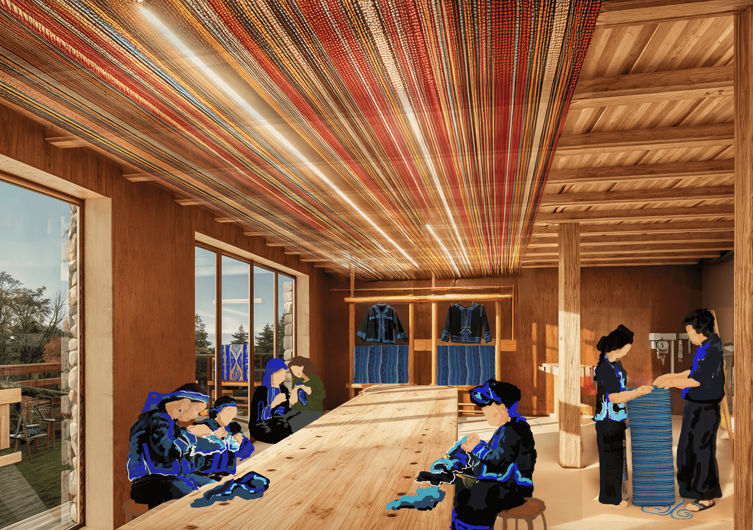 The community house serves as a cultural exchange hub between visitors and the Hà Nhì people. Visitors can experience crafts such as embroidery, weaving, and basket making or participate in skill-sharing workshops organized by the community. It will also be a center for preserving and promoting traditional cultural values, counteracting the risk of the extinction of ancient crafts.